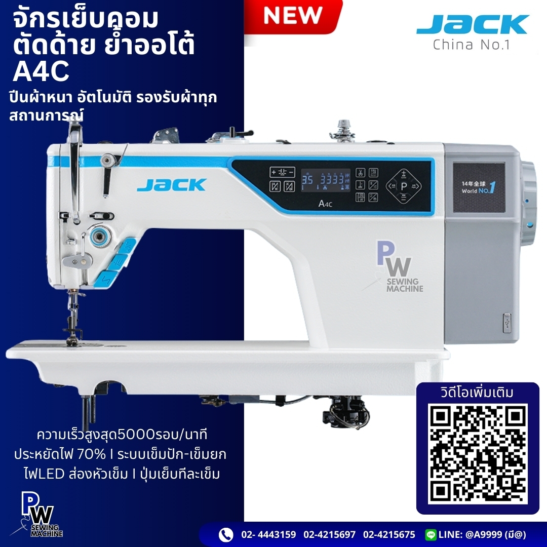 Jack จักรเย็บคอม รุ่น A4C ตัดด้าย ย้ำออโต้